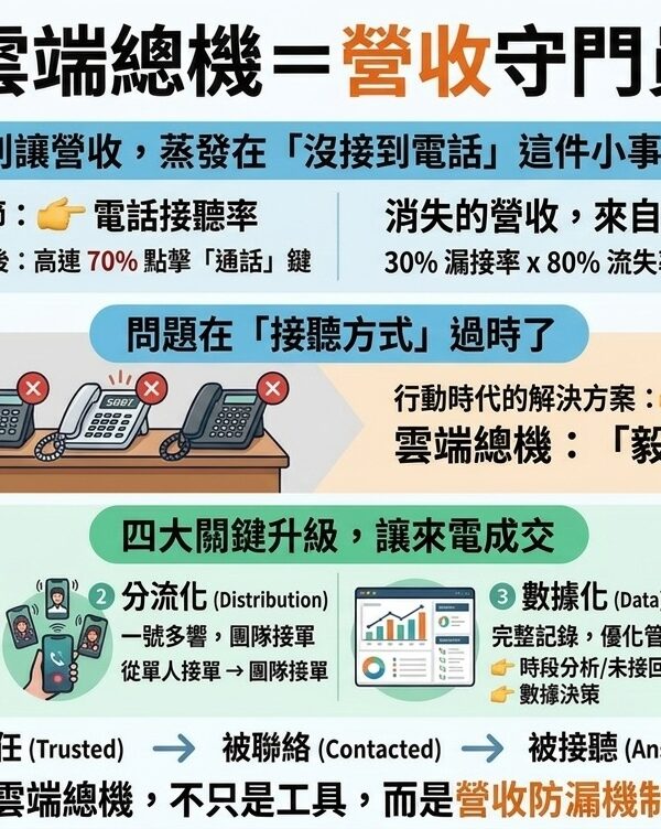 | Cloud PBX 雲端總機 | 新創企業、多據點公司 | 無需實體主機,透過網路即可管理全球分機。 |